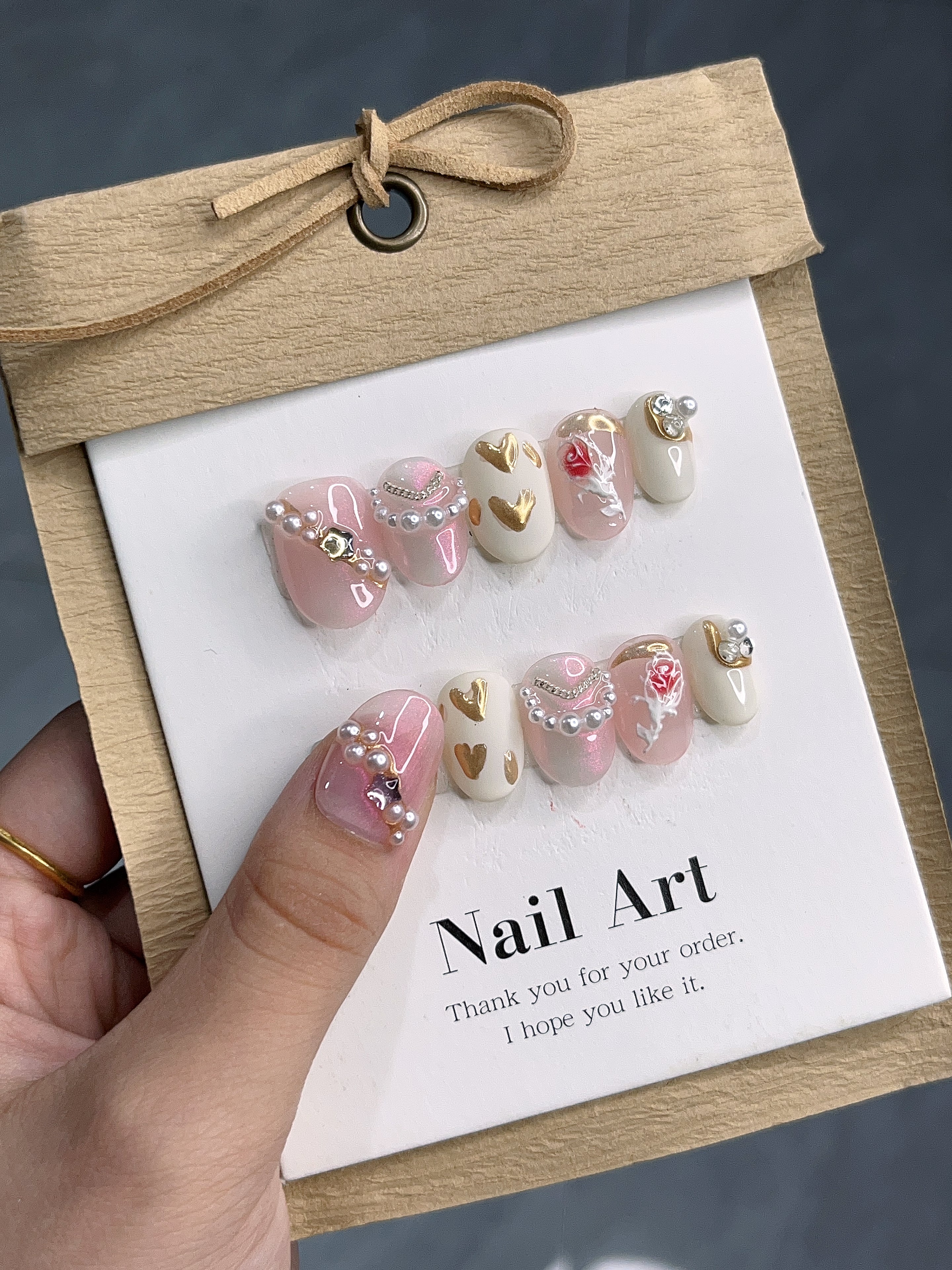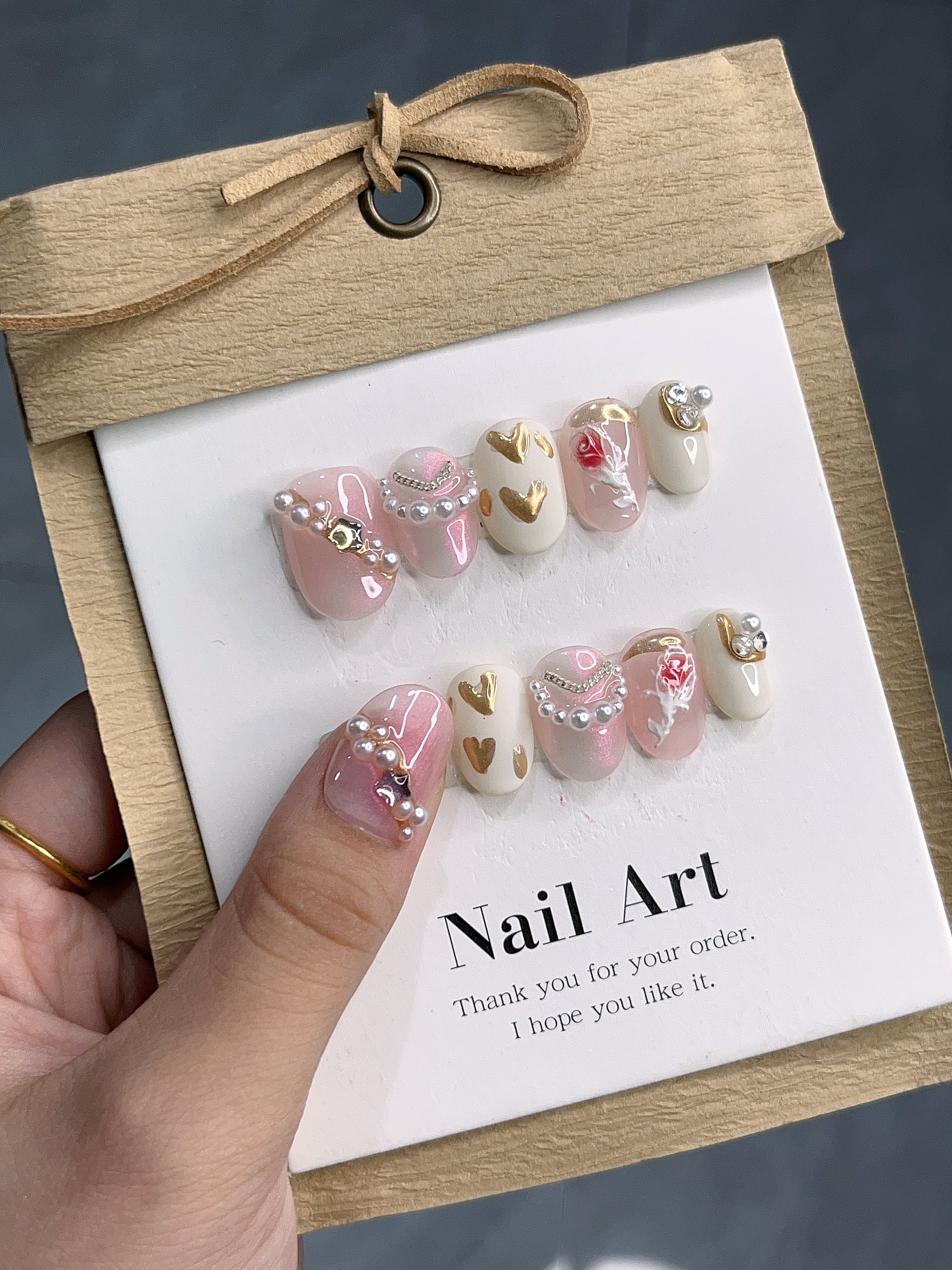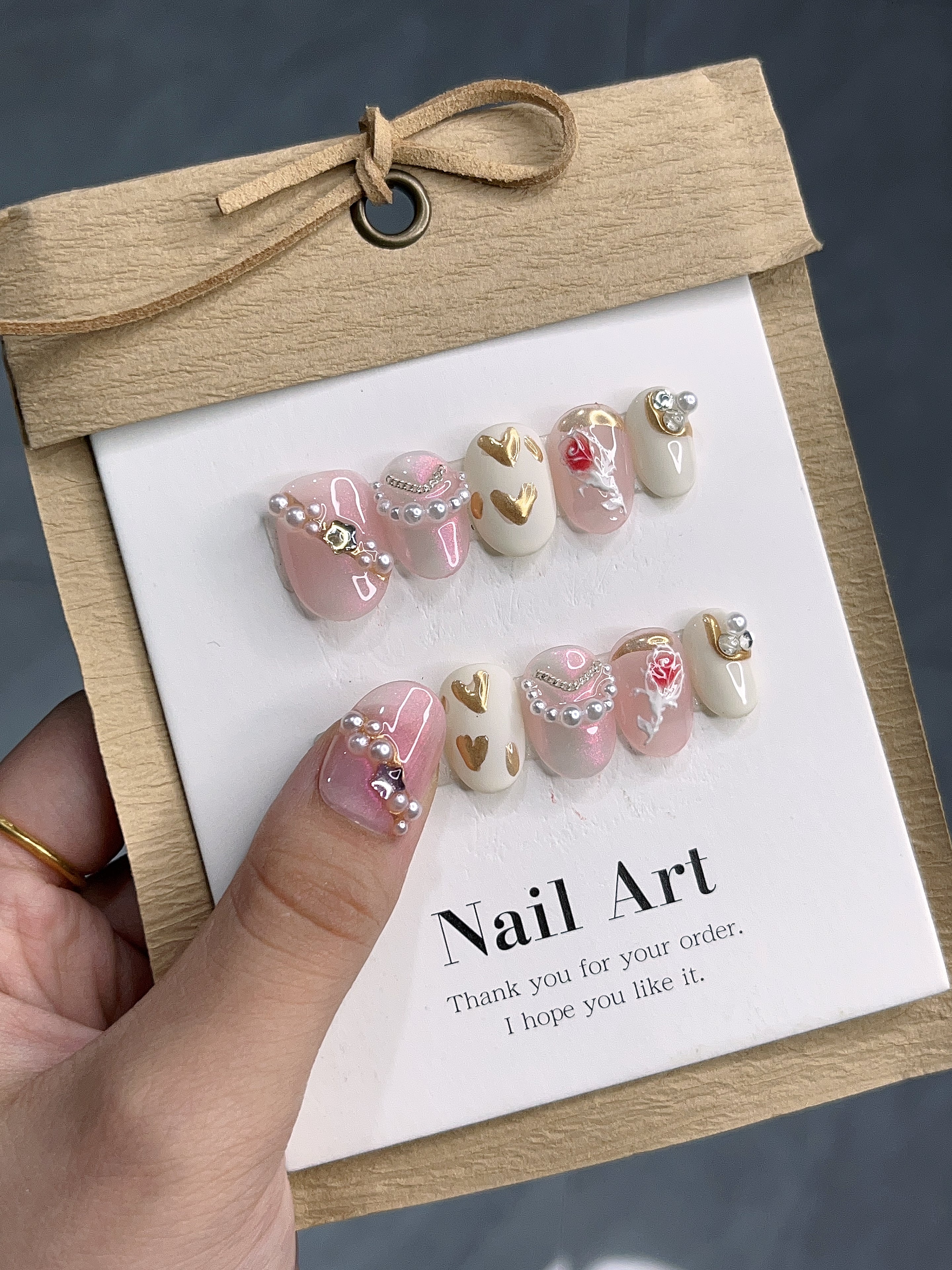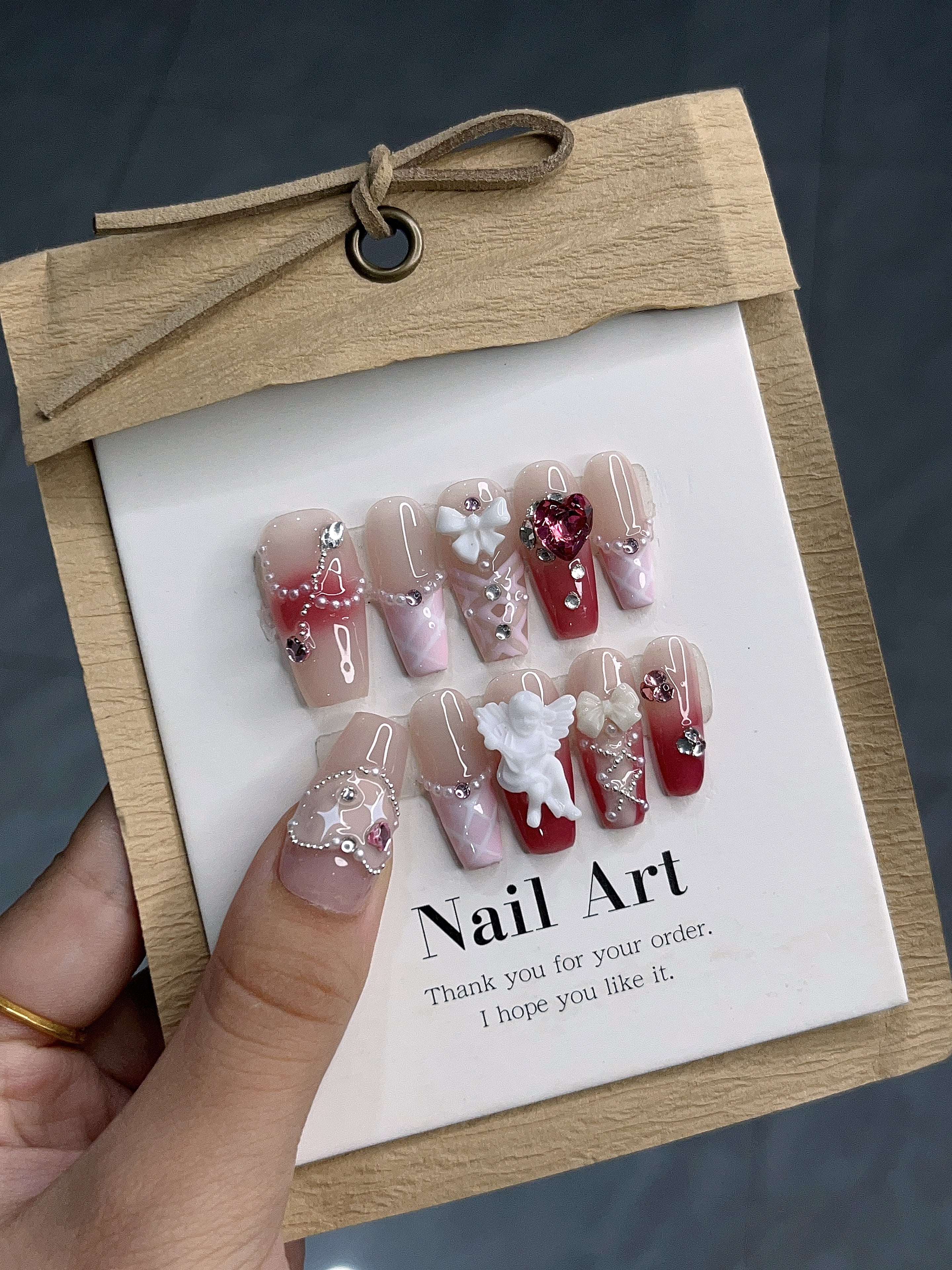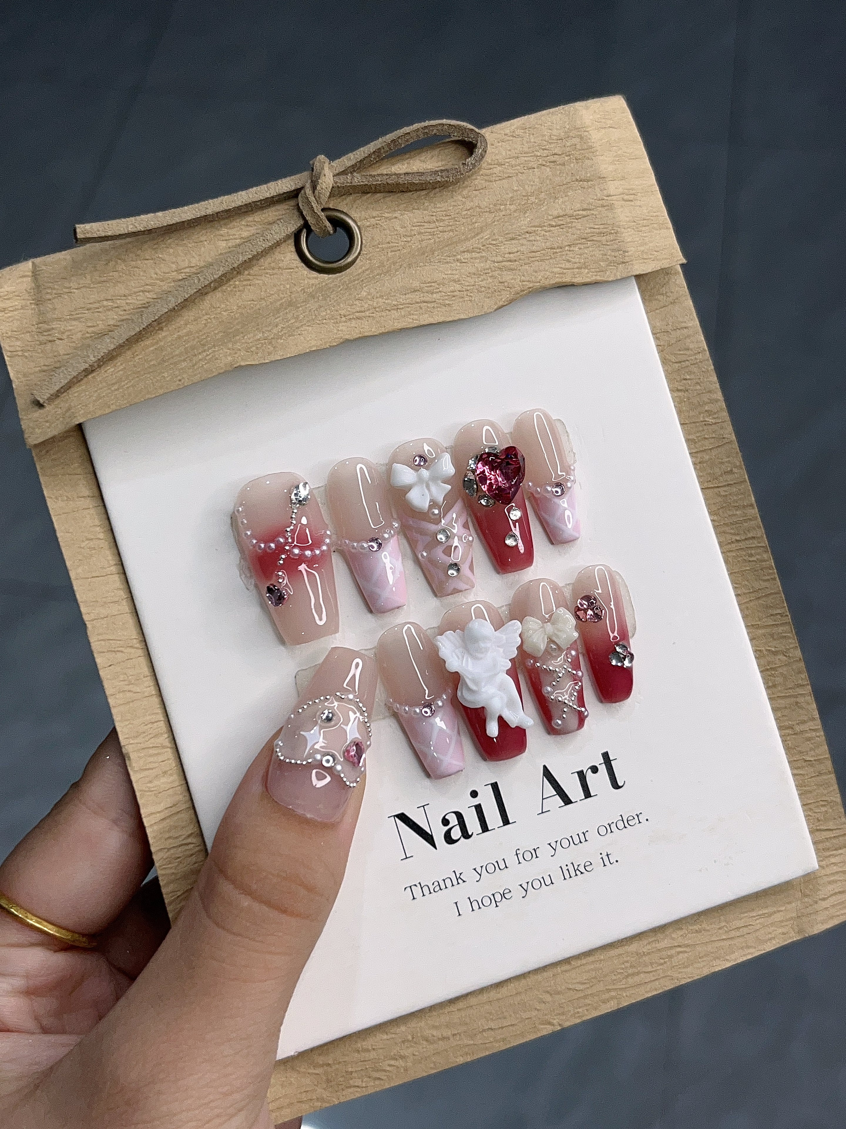 Strawberry Sweetheart Medium | Handmade Nails,Winter Nails 2023